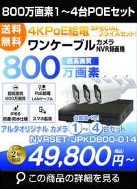 PoE ワンケーブル赤外線カメラ1台~4台セット フルHD 1TB搭載 高性能 4ch NVRレコーダー(録画機) カメラ 1台 2台 3台 4台 NVRSET-JPKD800-014