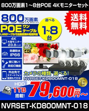 1台~8台セット - 800万画素防犯カメラ