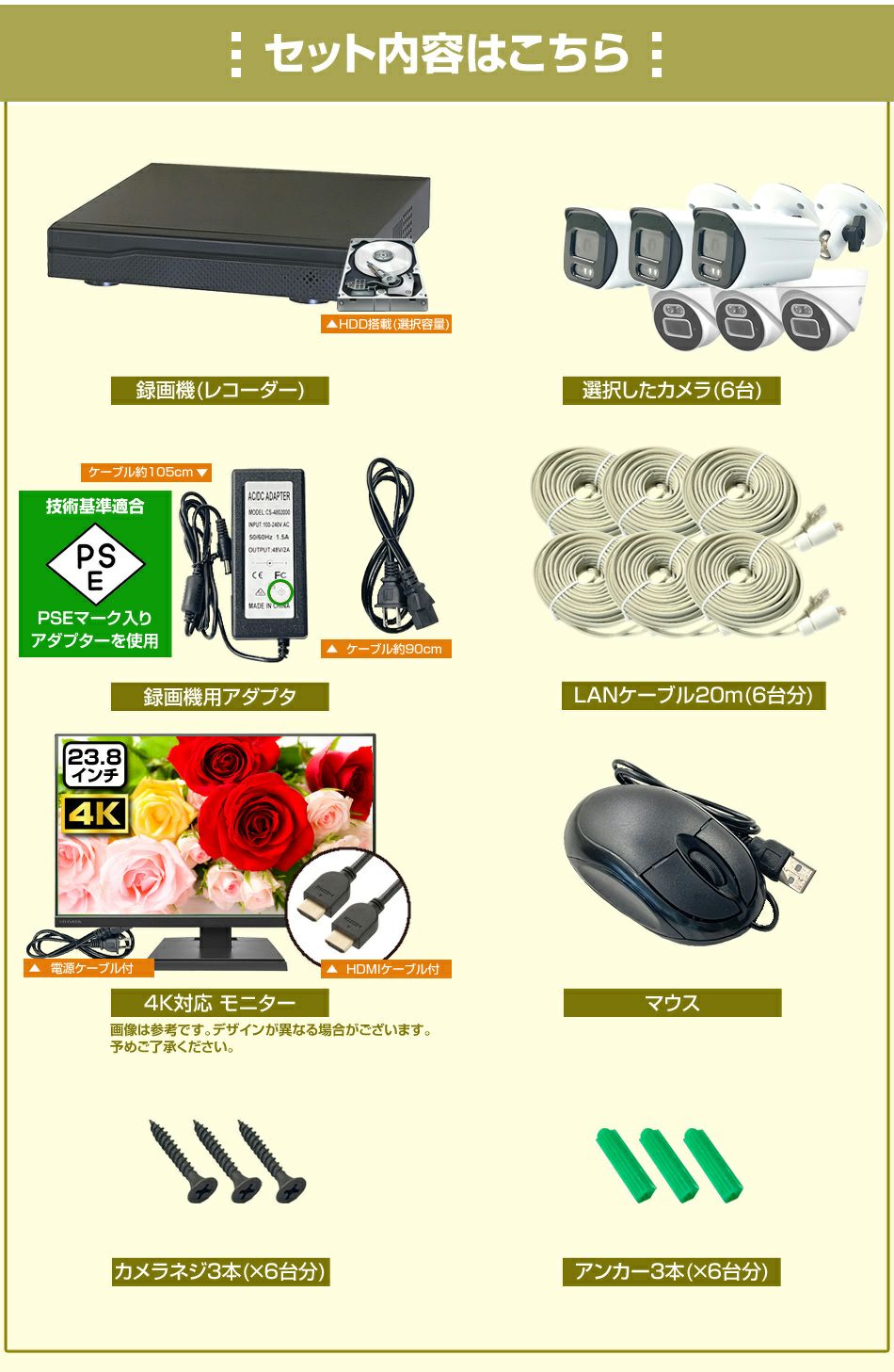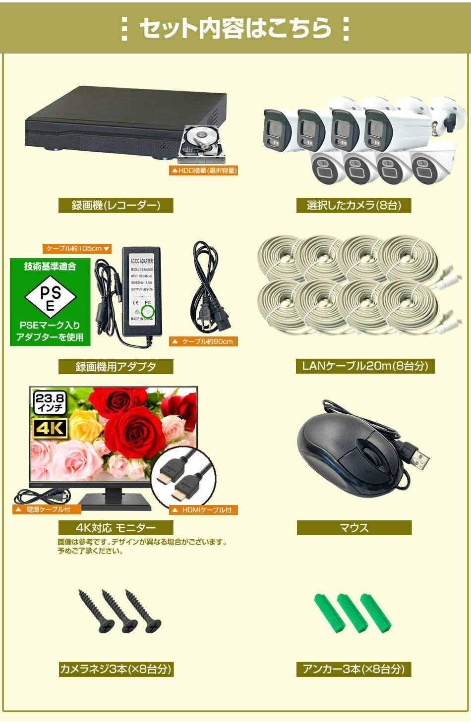 1台~8台セット(標準画質) - 400万画素防犯カメラ