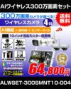 防犯カメラ 屋外 秋葉原 録画機能付き 防水 カメラ4台セット ワイヤレス 300万画素 マイク付き カメラ音声 10インチ液晶モニター付き 据え置き 壁掛け 人体検知 人感センサー ライト パソコン遠隔監視対応 バレット・ドーム・カメラが選べる 工事不要 防犯カメラセット ALWSET-300SMNT10-004