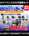 防犯カメラ 屋外 秋葉原 録画機能付き 防水 カメラ8台セット ワイヤレス 300万画素 マイク付き カメラ音声 10インチ液晶モニター付き 据え置き 壁掛け 人体検知 人感センサー ライト パソコン遠隔監視対応 バレット・ドーム・カメラが選べる 工事不要 防犯カメラセット ALWSET-300SMNT10-008