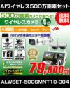 防犯カメラ 屋外 秋葉原 録画機能付き 防水 カメラ5台セット ワイヤレス 500万画素 マイク付き カメラ音声 10インチ液晶モニター付き 据え置き 壁掛け 人体検知 人感センサー ライト パソコン遠隔監視対応 バレット・ドーム・カメラが選べる 工事不要 防犯カメラセット ALWSET-500SMNT10-005