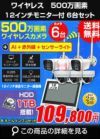 ワイヤレス防犯カメラセット おすすめ 防犯カメラ 家庭用 屋外防水ワイヤレスカメラ6台+12インチモニター一体型録画機 スマホ監視対応 無線で使える500万画素ワイヤレスカメラセットです。