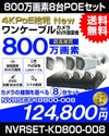 防犯カメラ 屋外 防水 AI人体検知 人感センサー ライト 屋外用 広角 ネットワークカメラ 8台セット 800万画素 POE LANケーブル マイク付き カメラ音声 スマホ対応 1TB 常時録画 パソコン遠隔監視対応 動体検知録画 防犯カメラセット LANケーブル20m付き NVRSET-KD800-008
