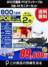 ネットワークカメラ2台セット POE機能でLANケーブルから電源供給可能! 家庭用 屋外防水ネットワークカメラ2台+録画機+モニター スマホ監視対応 ワンケーブルで使える800万画素防犯カメラセット