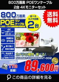 防犯カメラ 屋外 防水 4K 23.8インチモニター付 AI人体検知 広角 ネットワークカメラ 2台セット 800万画素 POE LANケーブル マイク付き カメラ音声 スマホ対応 1TB 常時録画 パソコン遠隔監視対応 動体検知録画 防犯カメラセット LANケーブル20m付き NVRSET-KD800MNT-002