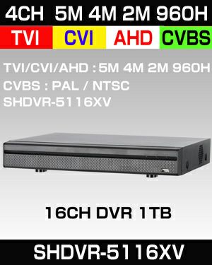 AHD/TVI/CVI/CVBS 4in1 16CH 防犯カメラ用レコーダー 録画機 有名メーカー製 52~500万画素 防犯カメラ用に最適な1TBのHDD標準装備 HDDは最大4TBまで増設可能! 最大30fps SHDVR-5116XV