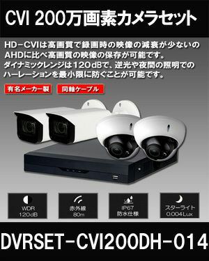 他の画像を見る HD-CVI同軸防犯カメラセット 防犯カメラ 4倍電動レンズ 屋外防水同軸カメラ4台+録画機 スマホ監視対応 長さを選べるケーブル。スターライトカメラでWDR120dB、HD-CVI 200万画素防犯カメラセットです。 防犯カメラ 屋外 録画機能付き ズーム対応 逆光補正 CVI 200万画素 同軸ケーブル 屋外 屋内 1TB H.265 防犯カメラセット 4台セット バレット・ドーム・カメラが選べる 常時録画 動体検知録画 防犯カメラセット DVRSET-CVI200DH-004 標準小売価格 ¥ 238,000 のところ 当店特別価格 ¥ 174,800 税込