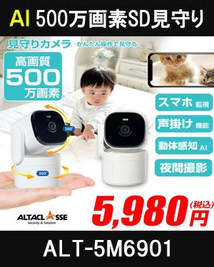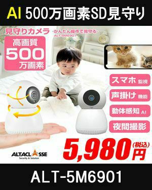 他の画像を見る 【5G対応 500万画素 Wi-Fiカメラ 見守りカメラ】microSDカード128GB対応 スマホで自宅を見守るWi-Fiネットカメラ! 見守りカメラ ベビーカメラ AI機能 ペットカメラ 監視カメラ ベビーモニター ペットモニター 小型カメラ wifi 防犯カメラ WEBカメラ ALT-5M6901NW 標準小売価格 ¥ 10,980 のところ 当店特別価格 ¥ 5,980 税込