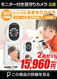 他の画像を見る 【スマホで顔を見ながら通話もできる】いつでもどこでも繋がれる 見守りカメラ ペットカメラ 【2点セット】 大画面モニター付き ベビーカメラ 監視カメラ ベビーモニター ペットモニター 小型カメラ wifi 防犯カメラ WEBカメラ ALT-XM03KDx2 標準小売価格 ¥ 25,960 のところ 当店特別価格 ¥ 15,960 税込