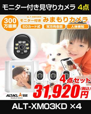他の画像を見る 【スマホで顔を見ながら通話もできる】いつでもどこでも繋がれる 見守りカメラ ペットカメラ 【4点セット】 大画面モニター付き ベビーカメラ 監視カメラ ベビーモニター ペットモニター 小型カメラ wifi 防犯カメラ WEBカメラ ALT-XM03KDx4 標準小売価格 ¥ 51,920 のところ 当店特別価格 ¥ 31,920 税込