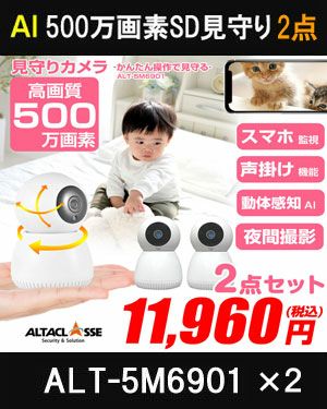 他の画像を見る 【5G対応 500万画素 Wi-Fiカメラ 見守りカメラ】microSDカード128GB対応 スマホで自宅を見守るWi-Fiネットカメラ! 見守りカメラ ペットカメラ 【2点セット】AI機能 ベビーカメラ 監視カメラ ベビーモニター ペットモニター 小型カメラ wifi 防犯カメラ WEBカメラ ALT-5M6901x2 標準小売価格 ¥ 21,960 のところ 当店特別価格 ¥ 11,960 税込