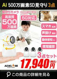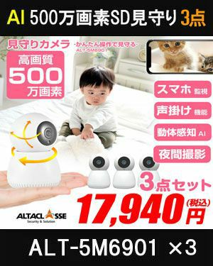 他の画像を見る 【5G対応 500万画素 Wi-Fiカメラ 見守りカメラ】microSDカード128GB対応 スマホで自宅を見守るWi-Fiネットカメラ! 見守りカメラ ペットカメラ 【3点セット】AI機能 ベビーカメラ 監視カメラ ベビーモニター ペットモニター 小型カメラ wifi 防犯カメラ WEBカメラ ALT-5M6901x3 標準小売価格 ¥ 32,940 のところ 当店特別価格 ¥ 17,940 税込