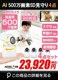 他の画像を見る 【5G対応 500万画素 Wi-Fiカメラ 見守りカメラ】microSDカード128GB対応 スマホで自宅を見守るWi-Fiネットカメラ! 見守りカメラ ペットカメラ 【4点セット】AI機能 ベビーカメラ 監視カメラ ベビーモニター ペットモニター 小型カメラ wifi 防犯カメラ WEBカメラ ALT-5M6901x4 標準小売価格 ¥ 43,920 のところ 当店特別価格 ¥ 23,920 税込