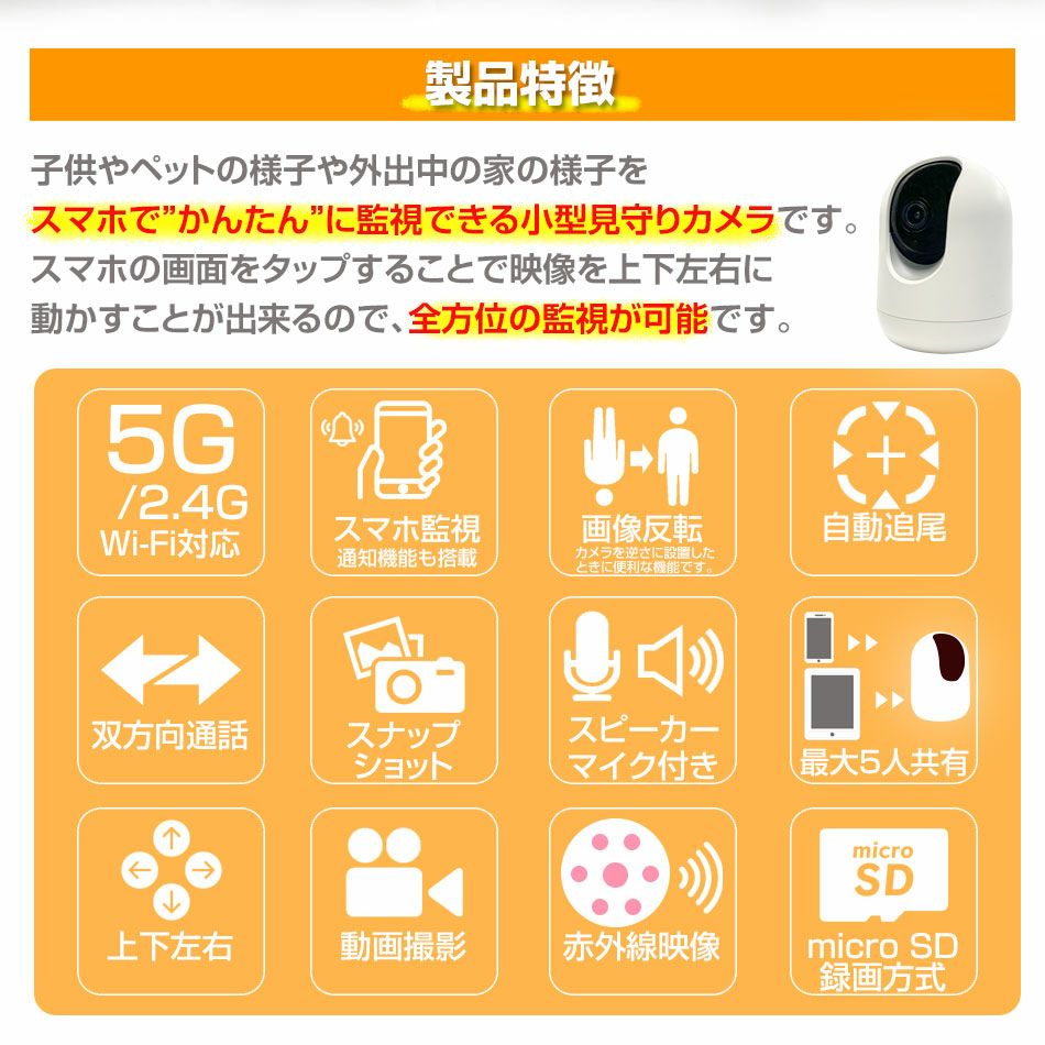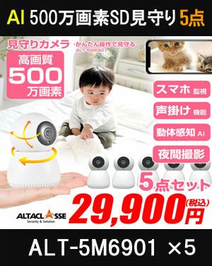 他の画像を見る 【5G対応 500万画素 Wi-Fiカメラ 見守りカメラ】microSDカード128GB対応 スマホで自宅を見守るWi-Fiネットカメラ! 見守りカメラ ペットカメラ 【5点セット】AI機能 ベビーカメラ 監視カメラ ベビーモニター ペットモニター 小型カメラ wifi 防犯カメラ WEBカメラ ALT-5M6901x5 標準小売価格 ¥ 54,900 のところ 当店特別価格 ¥ 29,900 税込