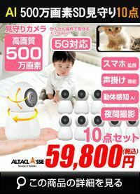 他の画像を見る 【5G対応 500万画素 Wi-Fiカメラ 見守りカメラ】microSDカード128GB対応 スマホで自宅を見守るWi-Fiネットカメラ! 見守りカメラ ペットカメラ 【10点セット】AI機能 ベビーカメラ 監視カメラ ベビーモニター ペットモニター 小型カメラ wifi 防犯カメラ WEBカメラ ALT-5M6901x10 標準小売価格 ¥ 109,800 のところ 当店特別価格 ¥ 59,800 税込
