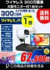 ワイヤレス防犯カメラセット 大型モニター付き 防犯カメラ 監視カメラ 家庭用 屋外防水ワイヤレスカメラ1台+モニター+録画機 スマホ監視対応 。無線で使える300万画素ワイヤレスカメラセットです。