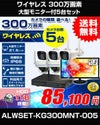 【家庭用防犯カメラ 無線・ワイヤレスカメラ】21.5インチモニター付き 300万画素ハイビジョンワイヤレスカメラ カメラ選べる5台セット!画質で選ぶ!ワイヤレスカメラ録画機セット ALWSET-KG300MNT-005
