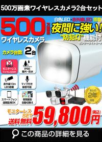 高画質の500万画素 ワイヤレス防犯カメラ2台セット