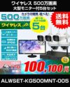 【家庭用防犯カメラ 無線・ワイヤレスカメラ】21.5インチモニター付き 500万画素ハイビジョンワイヤレスカメラ カメラ選べる5台セット!画質で選ぶ!ワイヤレスカメラ録画機セット ALWSET-KG500MNT-005