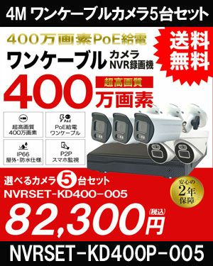 400万画素の高画質の防犯カメラセットです。200万画素と比べて動きの少ないものをより鮮明に映し出すことができます。同軸タイプとLANケーブルがあります。