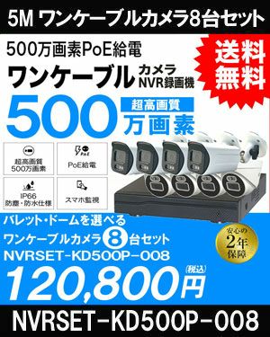 500万画素の高画質の防犯カメラセットです。200万画素と比べて動きの少ないものをより鮮明に映し出すことができます。ワイヤレスタイプ、同軸タイプとLANケーブルがあります。