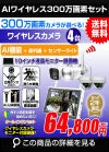 ワイヤレス防犯カメラセット 家庭用 おすすめ 防犯カメラ 省スペースモニター付!屋外防水ワイヤレスカメラ4台+モニター一体型録画機 スマホ監視対応 無線で使える300万画素ワイヤレスカメラセットです。