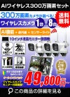 防犯カメラ 屋外 秋葉原 録画機能付き 防水 カメラ8台セット ワイヤレス 300万画素 マイク付き カメラ音声 10インチ液晶モニター付き 据え置き 壁掛け 人体検知 人感センサー ライト パソコン遠隔監視対応 バレット・ドーム・カメラが選べる 工事不要 防犯カメラセット ALWSET-300SMNT10-008