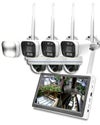 ワイヤレス防犯カメラセット 家庭用 おすすめ 防犯カメラ 省スペースモニター付!屋外防水ワイヤレスカメラ4台+モニター一体型録画機 スマホ監視対応 無線で使える500万画素ワイヤレスカメラセットです。