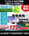 【家庭用防犯カメラ 無線・ワイヤレスカメラ】21.5インチモニター付き 500万画素ハイビジョンワイヤレスカメラ カメラ選べる8台セット!画質で選ぶ!ワイヤレスカメラ録画機セット ALWSET-KG500MNT-008