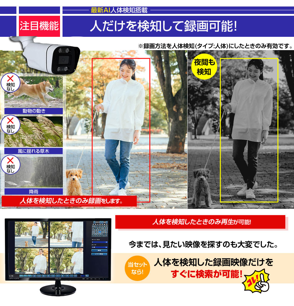 ②夜間も人体検知可能で寝ている時の監視もバッチリ!