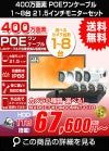 400万画素 高画質 21.5インチモニター付き 台数を選べる屋外用防犯カメラセット LANケーブル20m付き