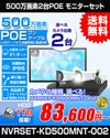 ネットワークカメラセット POE機能でLANケーブルから電源供給可能!おすすめ 家庭用 屋外防水ネットワークカメラ2台+録画機+モニター スマホ監視対応 ワンケーブルで使える500万画素防犯カメラセット