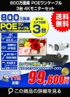 ネットワークカメラ3台セット POE機能でLANケーブルから電源供給可能! 家庭用 屋外防水ネットワークカメラ3台+録画機+モニター スマホ監視対応 ワンケーブルで使える800万画素防犯カメラセット