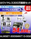 【家庭用防犯カメラ 防犯対策】300万画素ハイビジョンワイヤレスカメラセット!画質で選ぶ!省スペースに置ける10インチ高画質液晶モニター付き録画機 壁掛け設置も可能 300万画素ワイヤレスカメラ2台と受信機セット カメラ 2台 ALWSET-300SMNT10-002