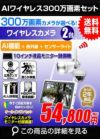 ワイヤレス防犯カメラセット 家庭用 おすすめ 防犯カメラ 省スペースモニター付!屋外防水ワイヤレスカメラ2台+モニター一体型録画機 スマホ監視対応 無線で使える300万画素ワイヤレスカメラセットです。