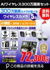 ワイヤレス防犯カメラセット 家庭用 おすすめ 防犯カメラ 省スペースモニター付!屋外防水ワイヤレスカメラ5台+モニター一体型録画機 スマホ監視対応 無線で使える300万画素ワイヤレスカメラセットです。
