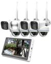 ワイヤレス防犯カメラセット 家庭用 おすすめ 防犯カメラ 省スペースモニター付!屋外防水ワイヤレスカメラ4台+モニター一体型録画機 スマホ監視対応 無線で使える300万画素ワイヤレスカメラセットです。