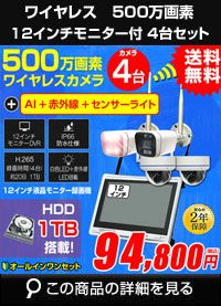 ワイヤレス防犯カメラセット おすすめ 防犯カメラ 家庭用 屋外防水ワイヤレスカメラ4台+12インチモニター一体型録画機 スマホ監視対応 無線で使える500万画素ワイヤレスカメラセットです。