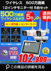 ワイヤレス防犯カメラセット おすすめ 防犯カメラ 家庭用 屋外防水ワイヤレスカメラ5台+12インチモニター一体型録画機 スマホ監視対応 無線で使える500万画素ワイヤレスカメラセットです。