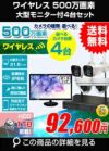【家庭用防犯カメラ 無線・ワイヤレスカメラ】21.5インチモニター付き 500万画素ハイビジョンワイヤレスカメラ カメラ選べる4台セット!画質で選ぶ!ワイヤレスカメラ録画機セット ALWSET-KG500MNT-004