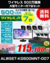 【家庭用防犯カメラ 無線・ワイヤレスカメラ】21.5インチモニター付き 500万画素ハイビジョンワイヤレスカメラ カメラ選べる7台セット!画質で選ぶ!ワイヤレスカメラ録画機セット ALWSET-KG500MNT-007