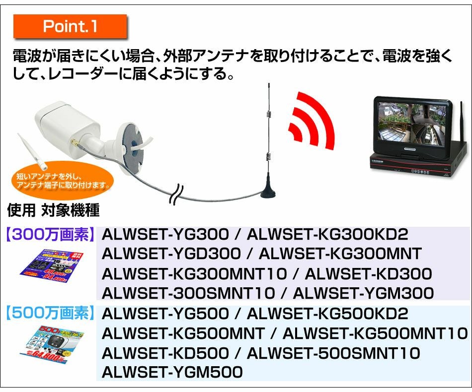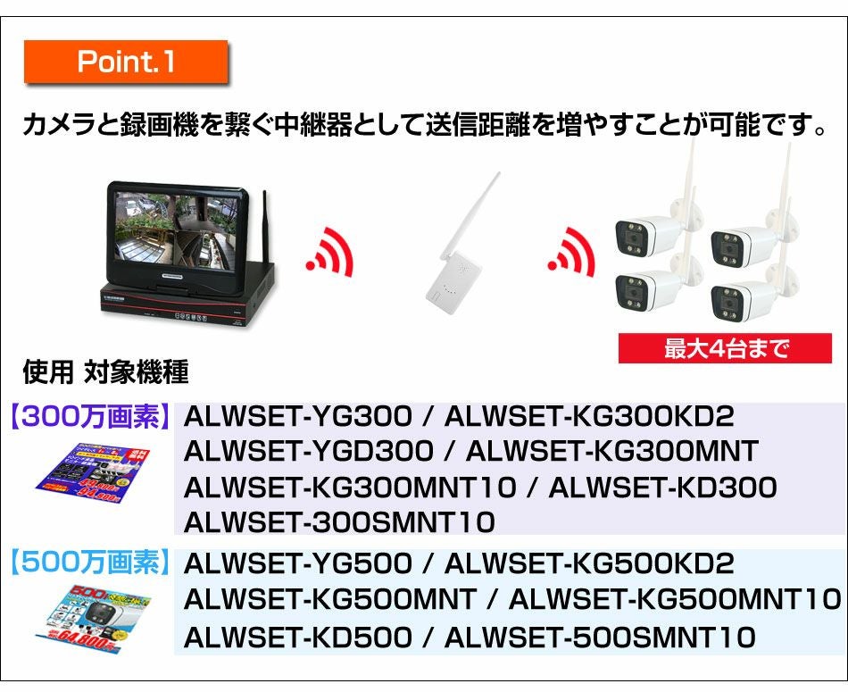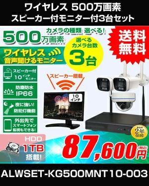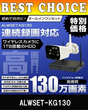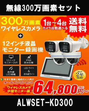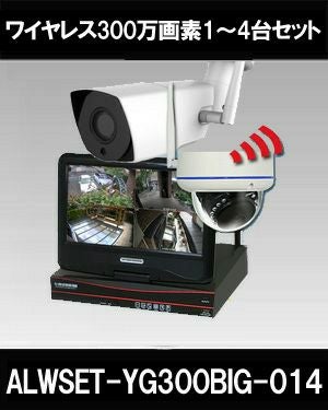 ワイヤレス防犯カメラセット おすすめ 防犯カメラ 家庭用 ALWSET-YG220後継機!高画質300万画素10インチモニター付デジタルレコーダーのハイビジョン大型タイプカメラのワイヤレスカメラセット!