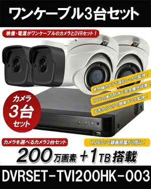防犯カメラ 屋外 録画機能付き 防水 防犯カメラ 3台セット TVI 243万画素 カメラの台数が選べる 常時録画 動体検知録画 防犯カメラセット DVRSET-TVI243-003