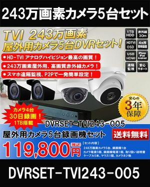 防犯カメラ 屋外 録画機能付き 防水 防犯カメラ 5台セット TVI 243万画素 カメラが選べる 常時録画 動体検知録画 防犯カメラセット DVRSET-TVI243-005