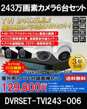 同軸防犯カメラセット おすすめ 防犯カメラ 家庭用 屋外防水同軸カメラ6台+録画機 スマホ監視対応 長さを選べるケーブル。同軸で使える大手有名メーカー製243万画素TVIカメラセットです。
