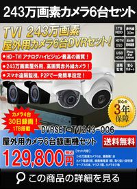 防犯カメラ 屋外 録画機能付き 防水 防犯カメラ 6台セット TVI 243万画素 カメラが選べる 常時録画 動体検知録画 防犯カメラセット DVRSET-TVI243-006