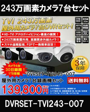防犯カメラ 屋外 録画機能付き 防水 防犯カメラ 7台セット TVI 243万画素 カメラが選べる 常時録画 動体検知録画 防犯カメラセット DVRSET-TVI243-007