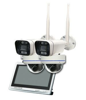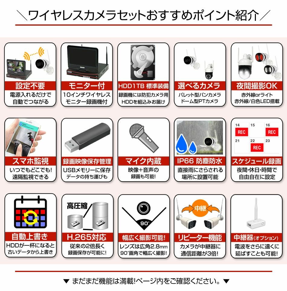 防犯カメラ 屋外 録画機能付き 防水 大型カメラ2台セット ワイヤレス 300万画素 H.265 10インチ液晶モニター付き 屋外用 大型赤外線バレットカメラ・ドームカメラが選べる パソコン遠隔監視対応 工事不要 防犯カメラセット ALWSET-YG300BIG-002