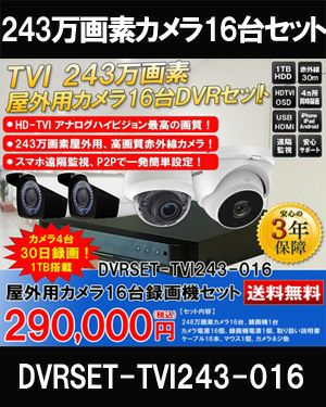 防犯カメラ 屋外 録画機能付き 防水 防犯カメラ 16台セット TVI 243万画素 カメラが選べる 常時録画 動体検知録画 防犯カメラセット DVRSET-TVI243-016